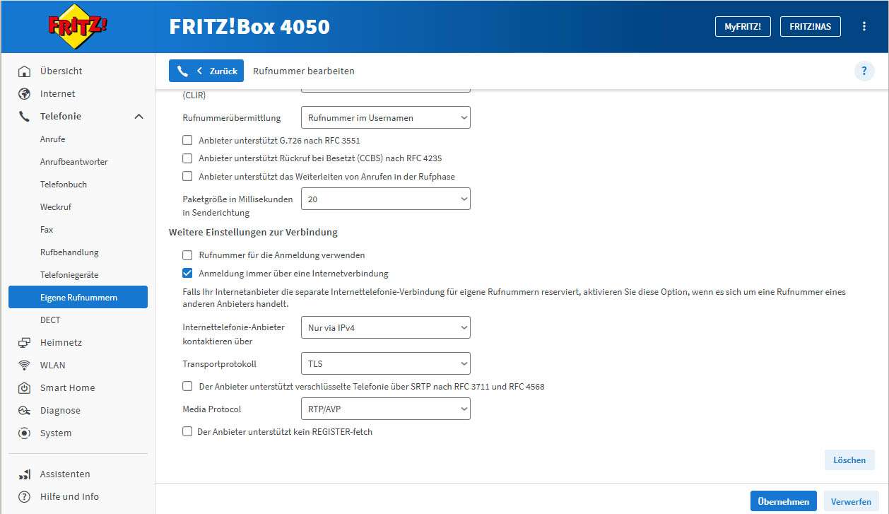 Fritzbox allgemein - UDP - TLS Falls es Probleme mit der Anmeldung der Telefonnummer gibt, kann man das Transportprotokoll von UDP auf TLS ändern. Veröffentlicht 17.12.2025 08:23
