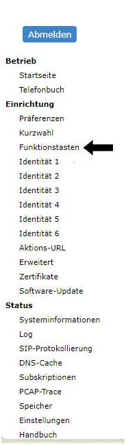 Menü des Telefons "Funktionstasten" auswählen und auf dieser Seite im