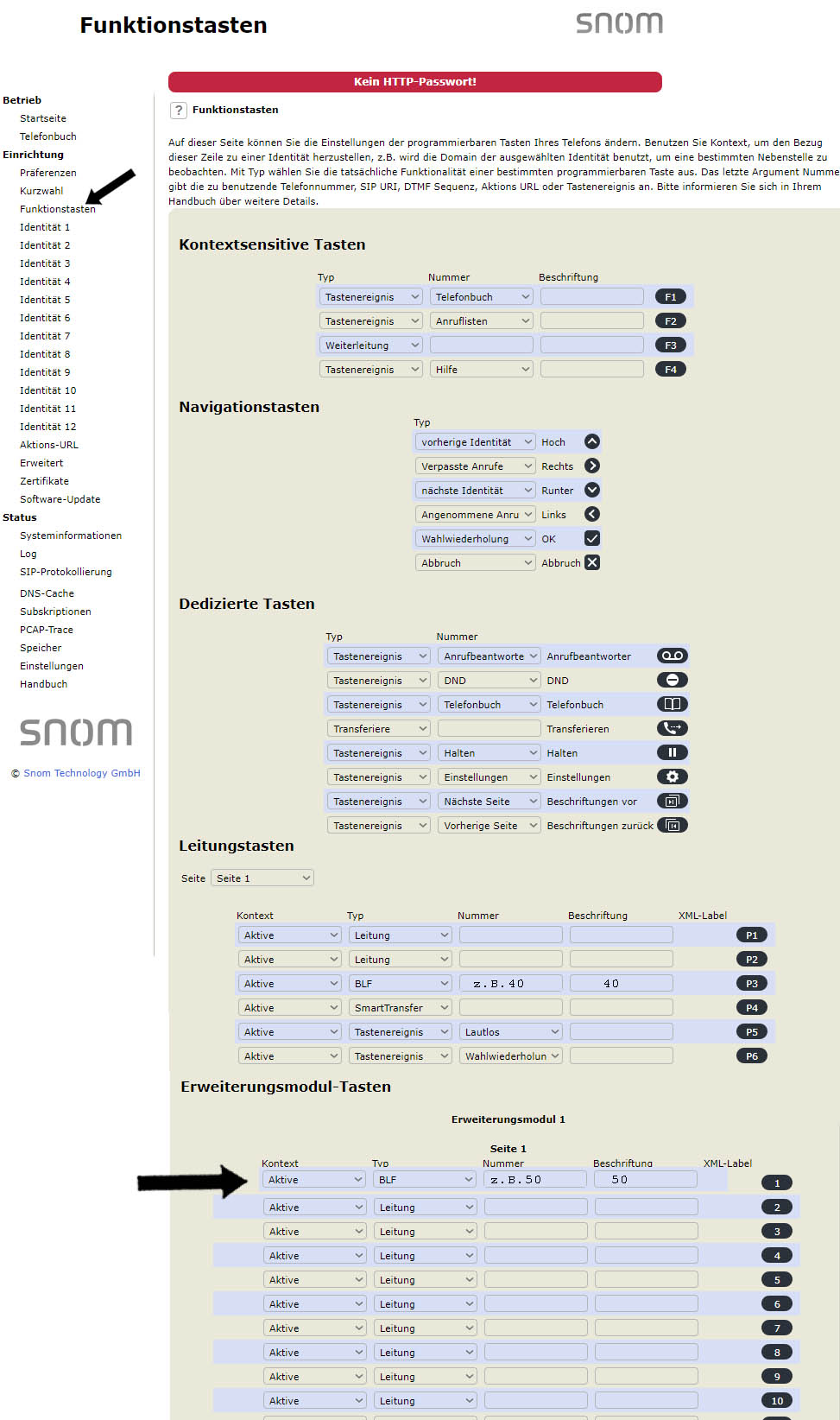 Abschnitt "Erweiterungsmodul-Tasten" die Formularfelder mit BLF und den