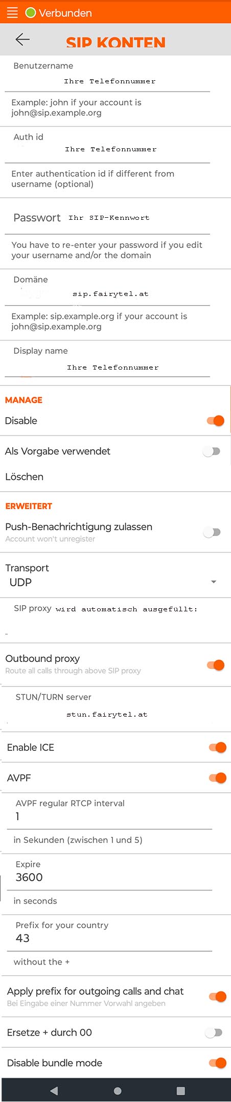Im folgenden Abschnitt konfigurieren Sie Ihren SIP-Account: