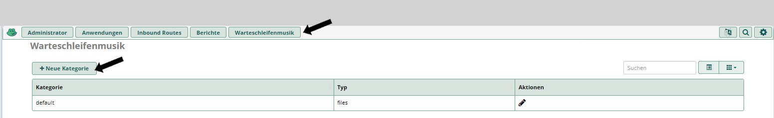 Wählen Sie das Menü "Warteschleifenmusik" aus und klicken Sie auf "Neue Kategorie"